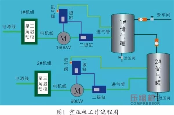 4、传统空压机供气系统中运行参数的设定不同也会造成空压机用电量的不同,必须根据用气工况进行设定,才能达到最经济的运行效果。