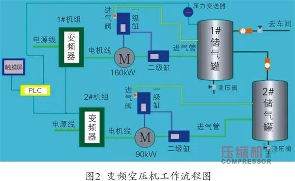 空压机的种类有很多,但其供气控制方式几乎都是采用加、卸载控制方式。该供气方式虽然原理简单、操作方便,但存在耗电量高、进气阀易损坏、供气压力不稳定等问题。